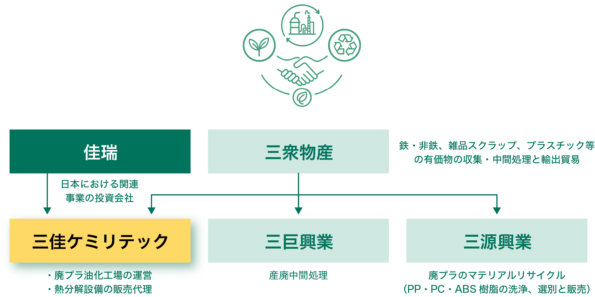 三佳ケミリテックは、油化(ケミカルリサイクル)を中心に、
